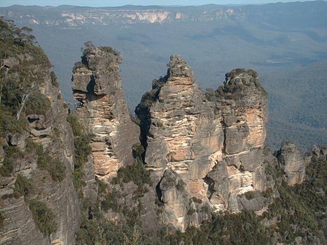 If you look closely at the left-most "sister", you can just make out a walkway that people can walk over to the rocks on.