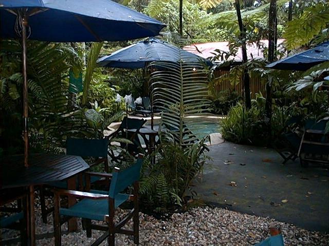 This picture shows a little bit of the restaurant (open to the rainforest and it's animals like the bandicoot), and you can see a little bit of the pool.