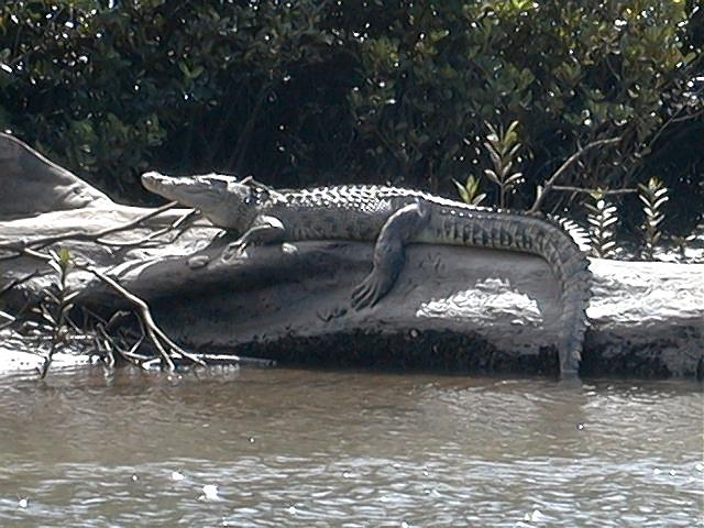 Our guide told us he was blind in his left eye - don't know how he knows that. We say a 1 1/2 foot baby croc that was about 6 months old too.